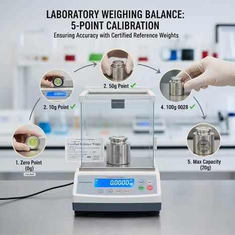By performing this test, laboratories ensure that the balance reads accurately at all levels, not just one. Regular 5-point tests are an important part of Good Laboratory Practice (GLP) and ISO calibration standards.