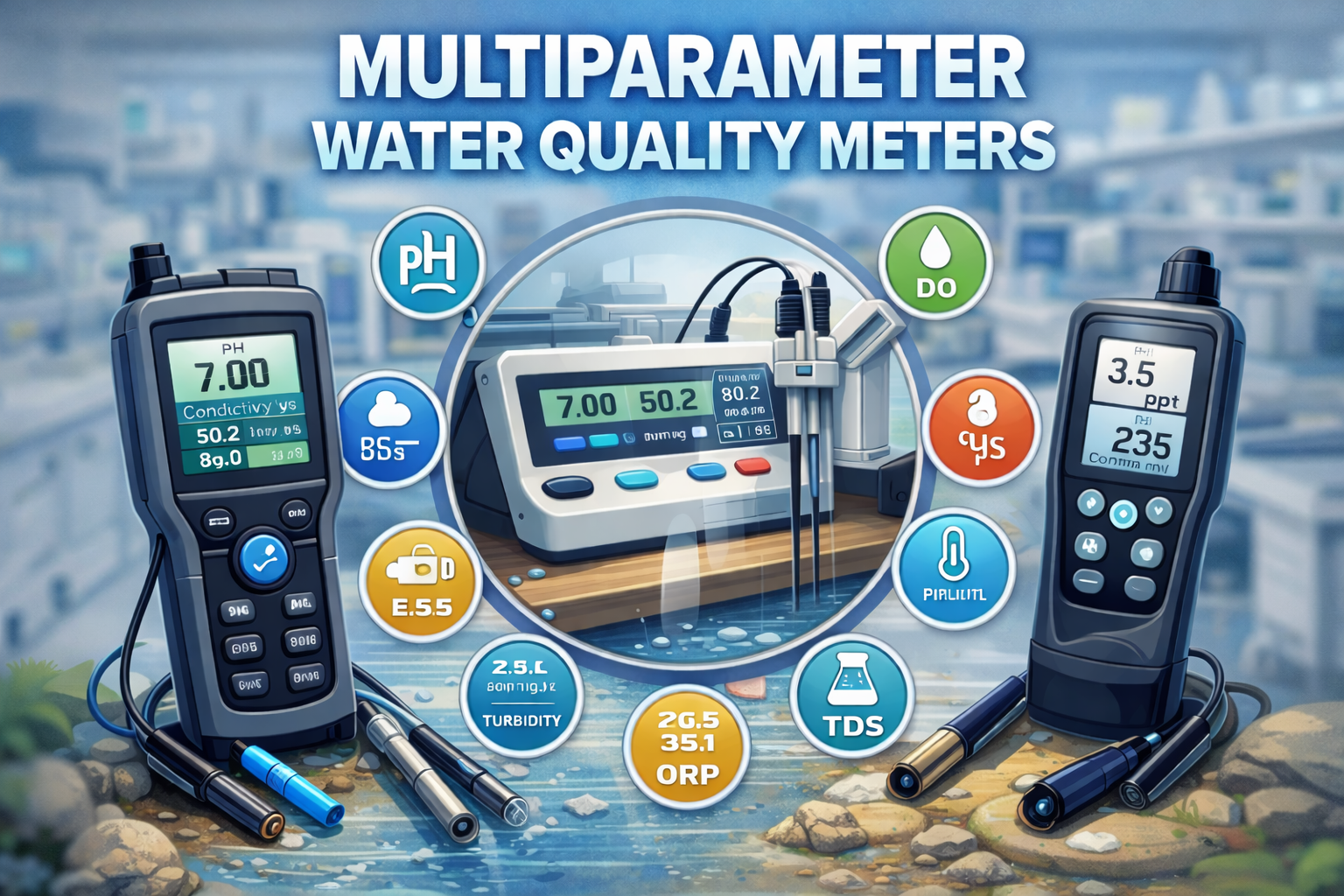 Multiparameter water quality meters are powerful tools that simplify water analysis by measuring multiple parameters with a single device. These instruments improve testing efficiency, provide accurate measurements, and make water monitoring more convenient for laboratories and field technicians.